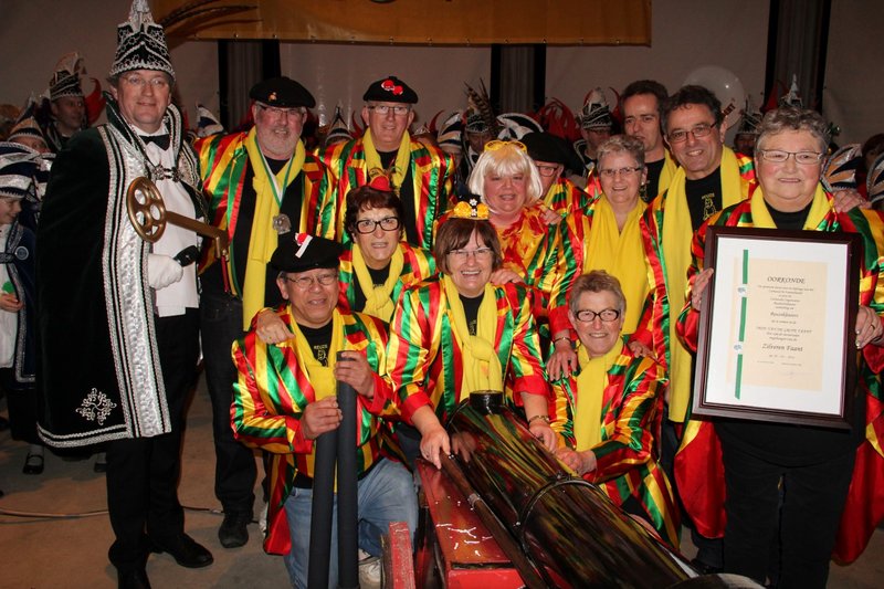 Nadat zij een kanon hadden overhandigd aan de Raad van Elf voor op de nieuwe Prinsenwagen kregen zij uit handen van Prins Mart d’n Vaifde de versierselen van de Zilveren Faant